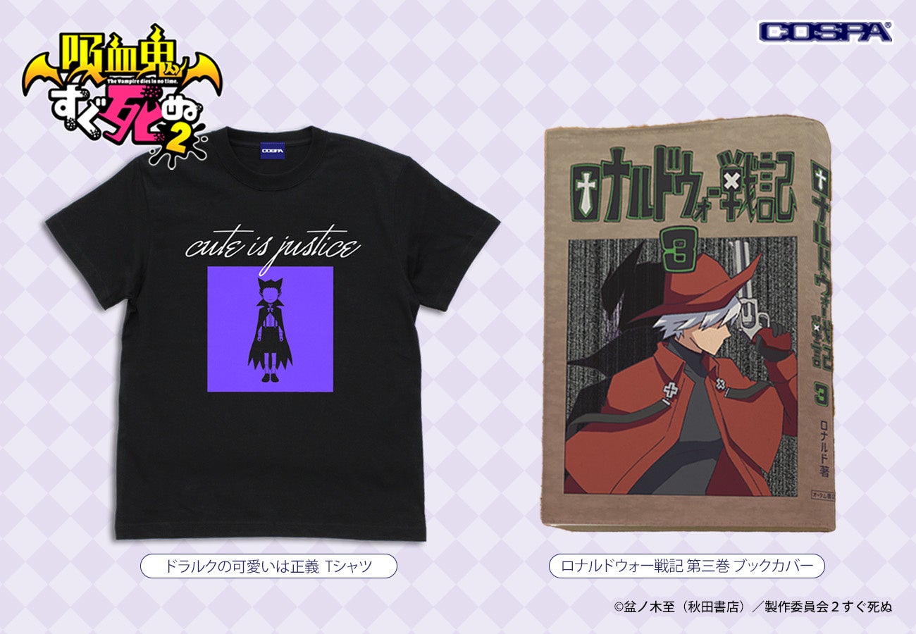 TVアニメ『吸血鬼すぐ死ぬ2』の作中に登場する「ロナルドウォー戦記」第三巻の表紙をブックカバーとして商品化!「可愛いドラちゃんは正義なのだよ!」ドラルクの主張がTシャツになった新作グッズも同時リリース!