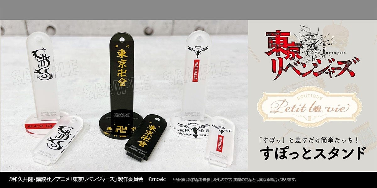 「すぽっ」と差すだけ簡単たっち!ぬいぐるみの自立をサポートする「すぽっとスタンド」に、『東京リベンジャーズ』デザインが登場です!「東京卍會」「芭流覇羅」「黒龍」3つのチームをラインナップ。