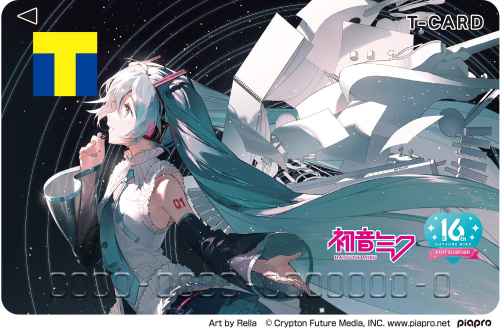 初音ミクの16周年と、キャラクターTカード10周年を記念する「Tカード」が登場!イラストレーター・Rella氏が描く初音ミクのイラストを使用しました。Tカード番号は、初音ミクの誕生日8月31日にちなみ「0831」が入った特別仕様。期間限定のスペシャルなTカードです。