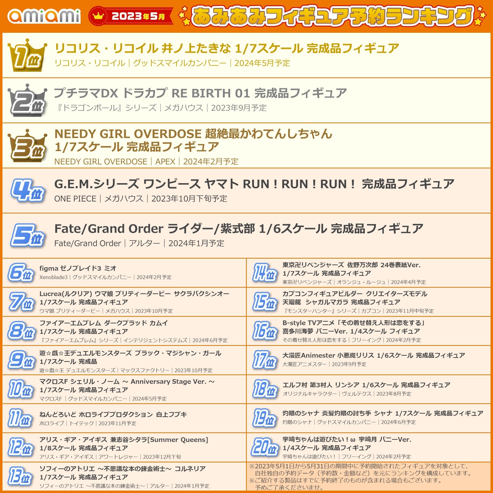 - ホビーショップ『あみあみ』の「2023年5月フィギュア予約ランキング」を発表!