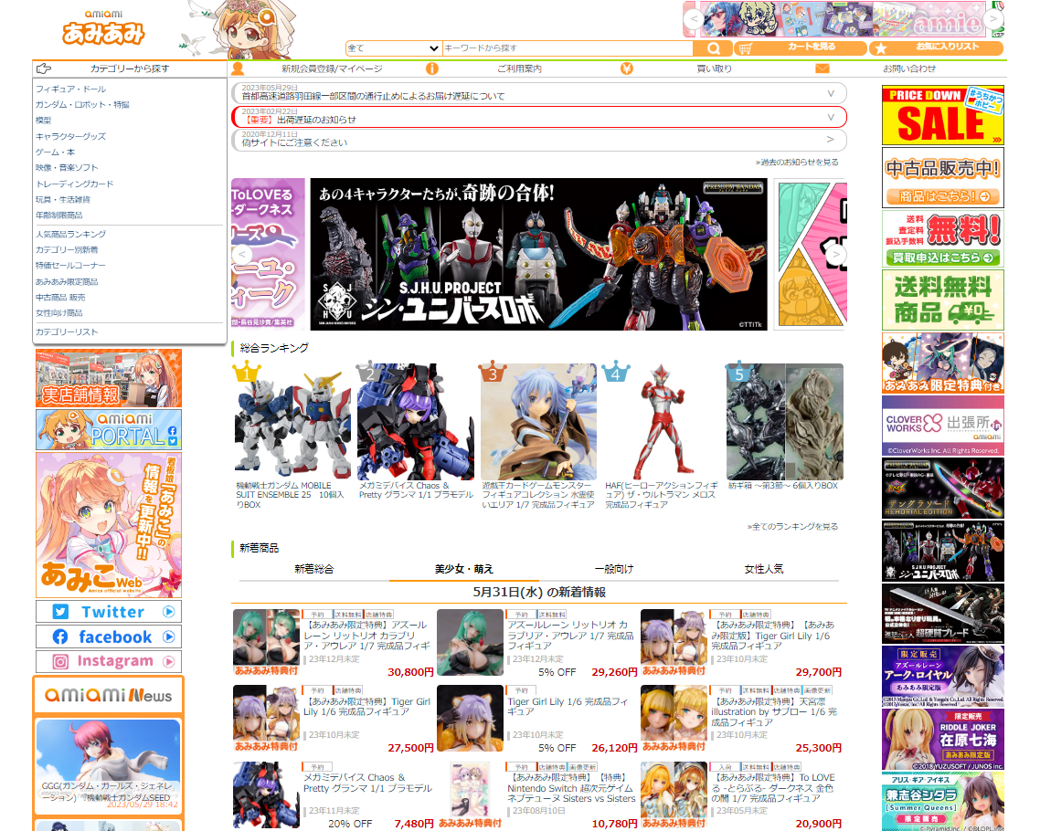 フィギュアからグッズまで。人気のホビー商品なら「あみあみ」におまかせください!!