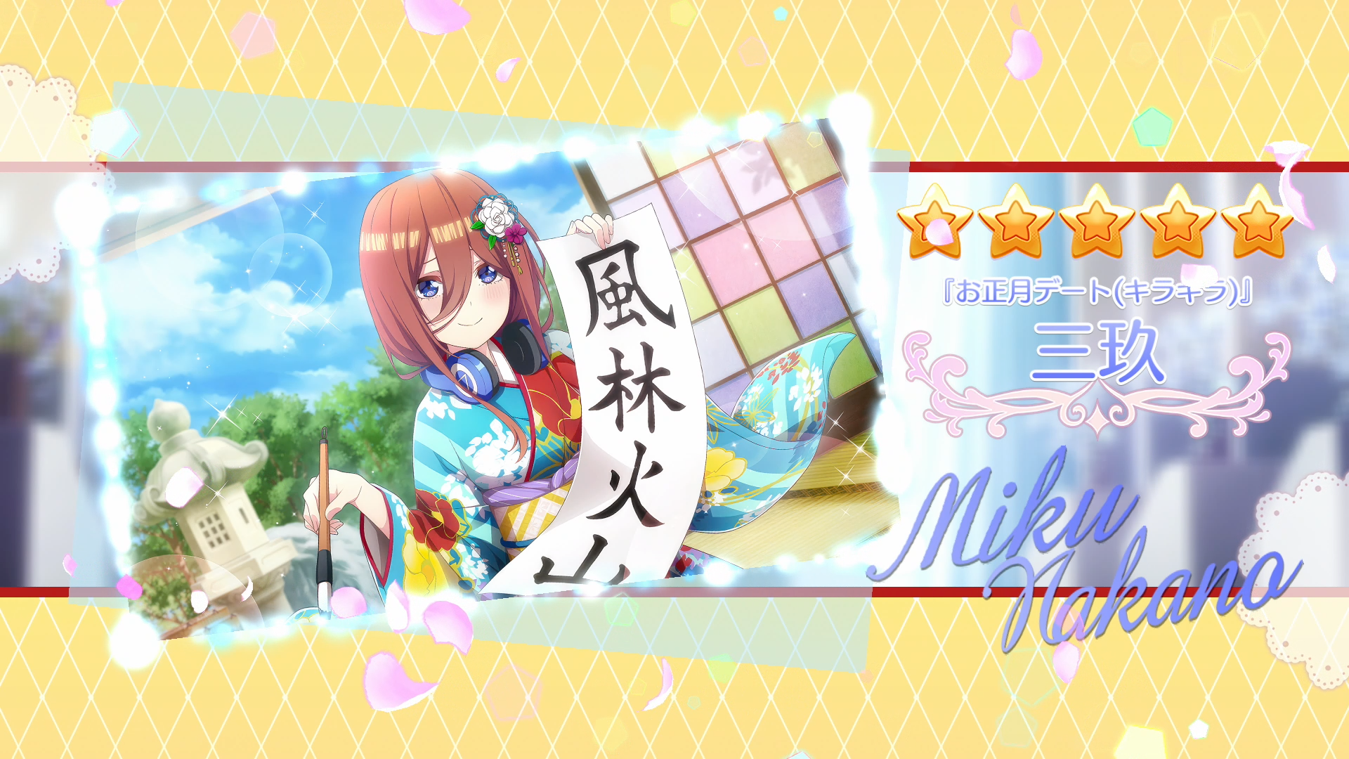 プレイする日によって背景や衣裳が変わる五つ子七変化を楽しむことができます。