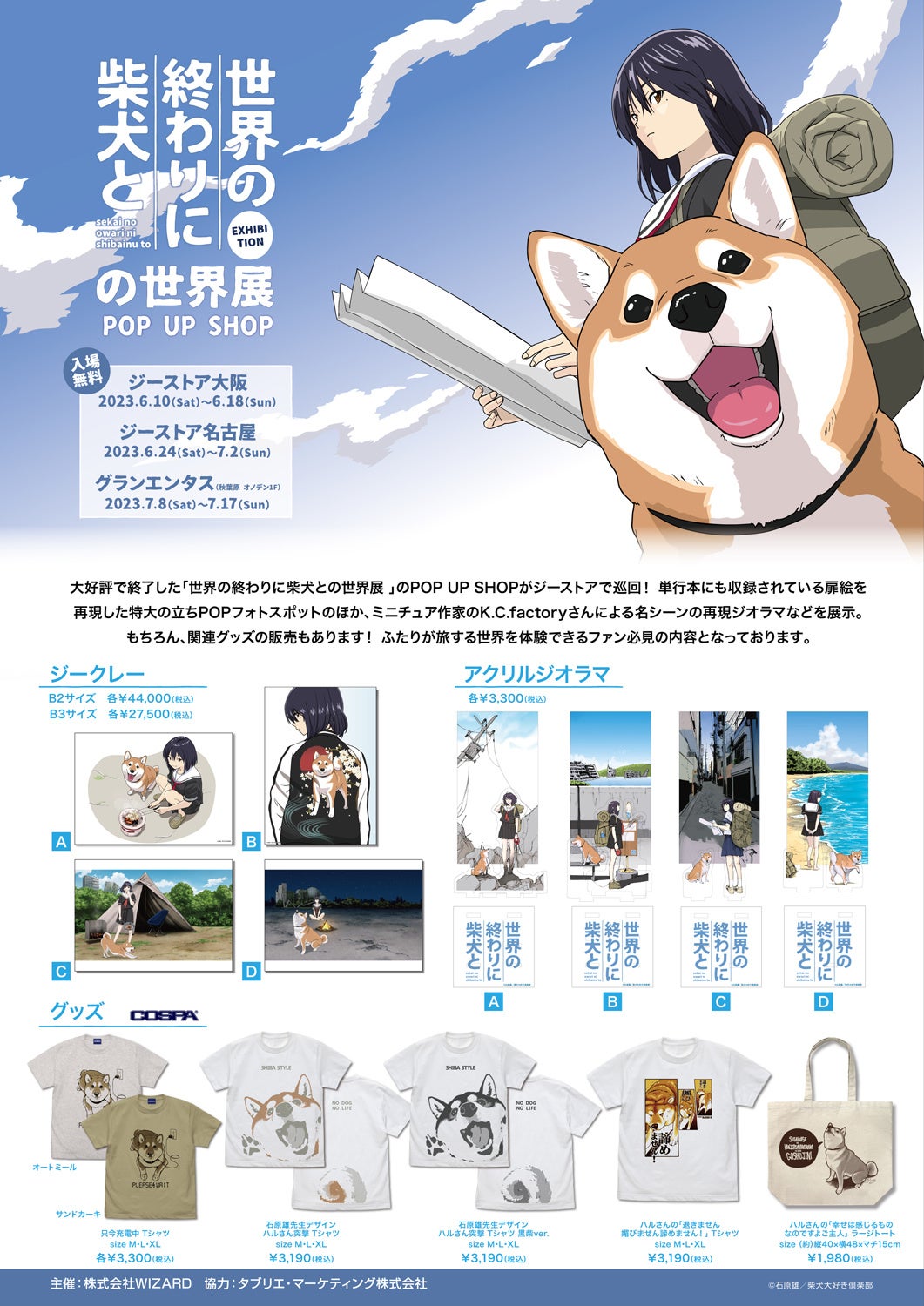 《『世界の終わりに柴犬との世界展』POP UP SHOP》では、単行本にも収録されている扉絵を再現した特大の立ちPOPフォトスポット、 ミニチュア作家のK.C.factoryさんによる名シーンの再現ジオラマ展示をはじめ、