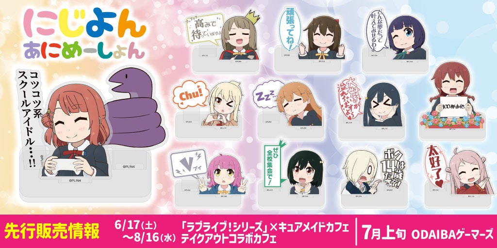 これらは2023年6月17日(土)~8月16日(水)〈「ラブライブ!シリーズ」×キュアメイドカフェ テイクアウトコラボカフェ〉、2023年7月上旬〈ODAIBAゲーマーズ〉にて先行販売いたします。