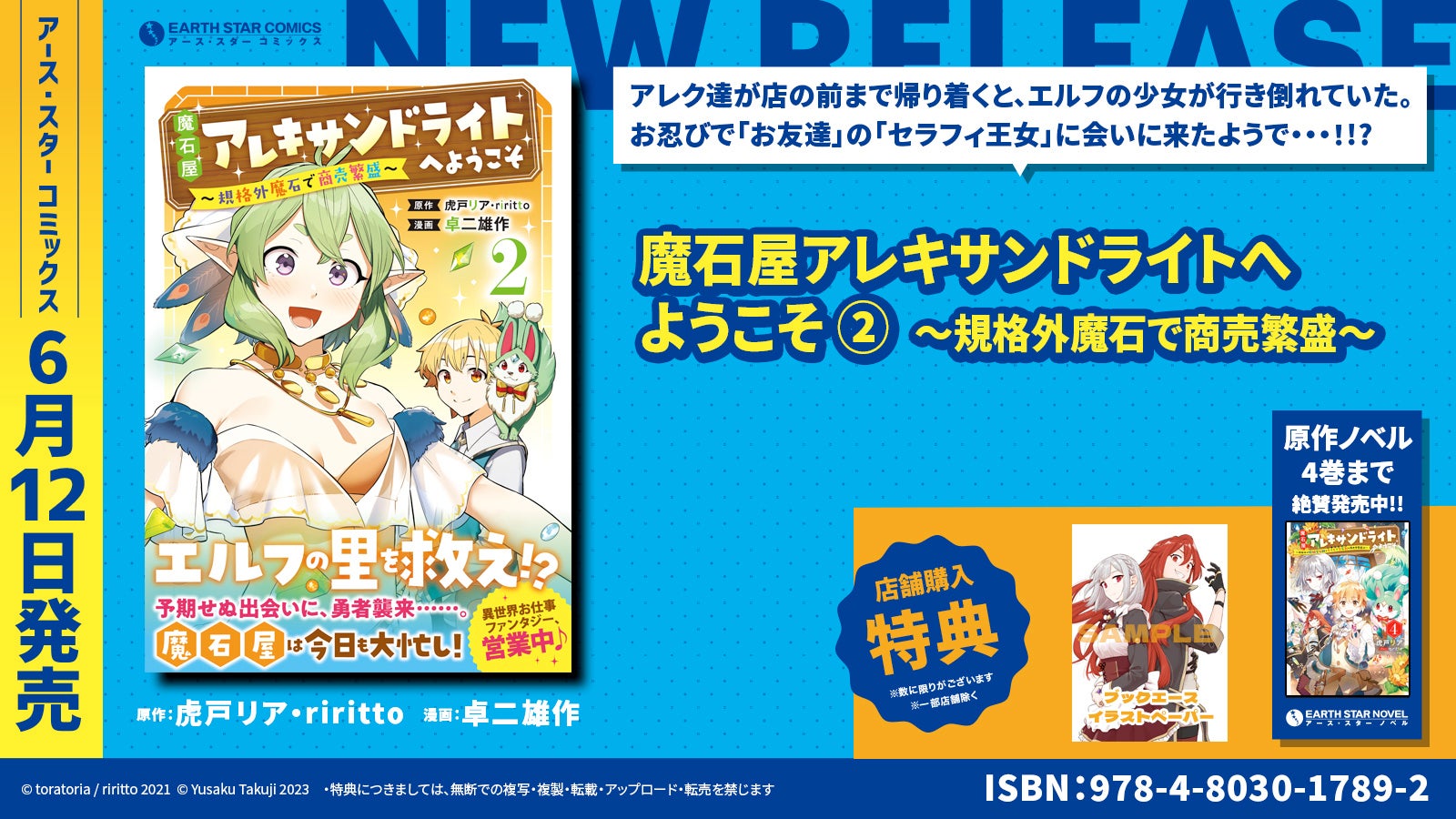 アース・スターノベルで刊行中のノベルが原作で、現在コミック アース・スターで掲載中の人気作品『魔石屋アレキサンドライトへようこそ ~規格外魔石で商売繁盛~』(原作:虎戸リア・riritto 漫画:卓二雄作)第2巻を6月12日(月)に発売いたします。