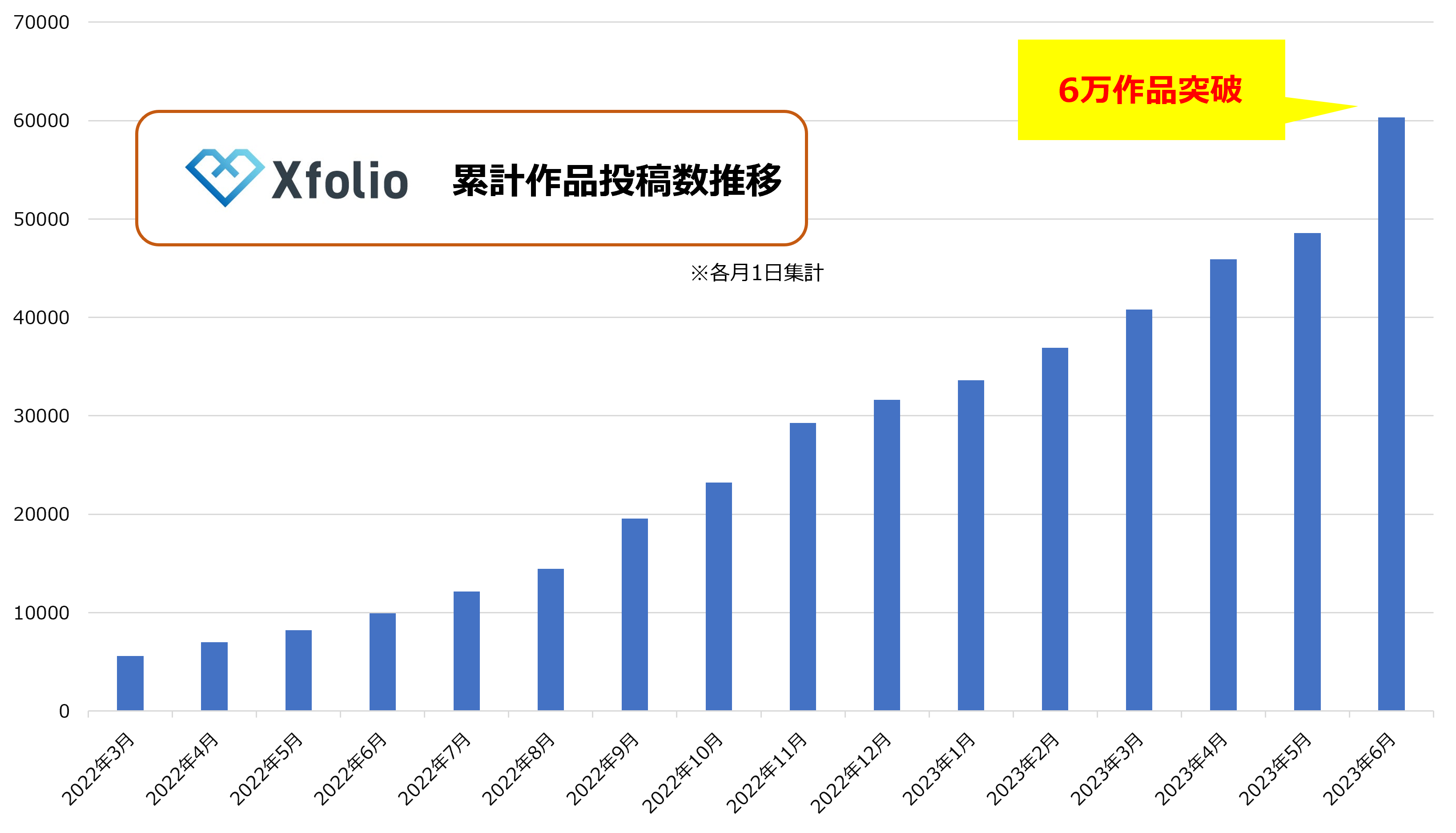 多くのクリエイターにご利用いただき、サービス開始以降、2023年6月1日現在までに投稿された累計作品数は、イラストが約5万2700作品、マンガが約7000作品、小説が約650作品となり、総計6万作品を突破いたしました※