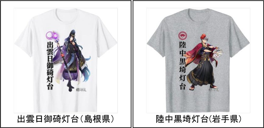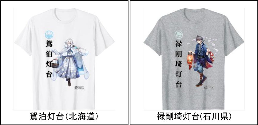 Amazon Merch on Demand(アマゾン マーチオンデマンド)にて好評発売中の『燈の守り人』アパレルグッズに、全国各地の“守り人”がデザインされたキャラクターTシャツシリーズが新たなラインナップとして登場します。現在、40体以上が公開されている “守り人”のキャラクターデザインには、それぞれの灯台の特色や地域のストーリーが盛り込まれており、それらの意匠を存分に楽しめるTシャツとなっています。今回、記念すべきシリーズ第一弾として登場するのは、角島灯台(山口県)、美保関灯台(島根県)、禄剛埼灯台(石川県)、能生港灯台(新潟県)、鴛泊灯台(北海道)、樫野埼灯台(和歌山県)、経ヶ岬灯台(京都府)、陸中黒埼灯台(岩手県)、潮岬灯台(和歌山県)、出雲日御碕灯台(島根県)の10灯台。今後も続々と、新たなキャラクターTシャツをお届けしますのでご期待ください。