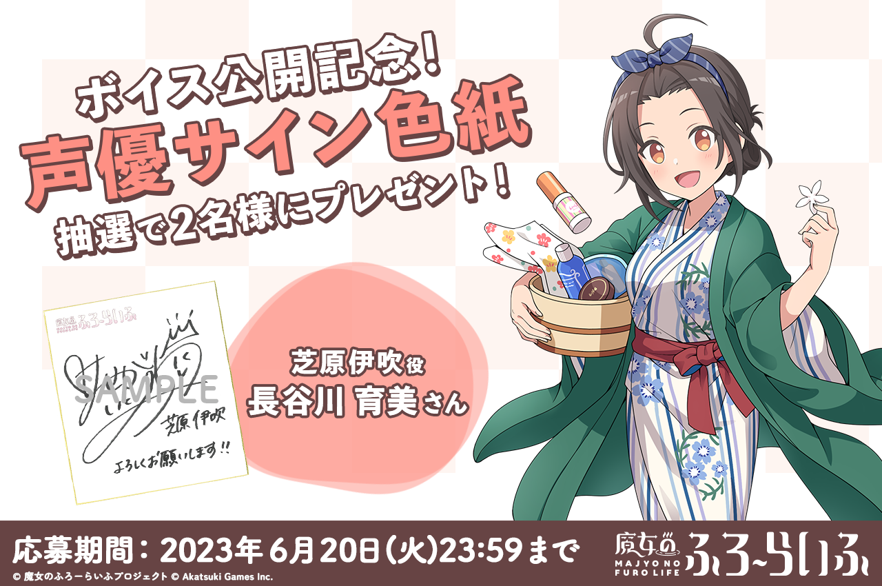 芝原伊吹役を演じる声優、長谷川 育美さんの直筆サイン色紙が当たるTwitterキャンペーンを開催いたします。『魔女のふろーらいふプロジェクト』の公式Twitter(@majyofuro https://twitter.com/majyofuro)をフォローしていただき、対象ツイートをリツイート(RT)してご応募ください。
