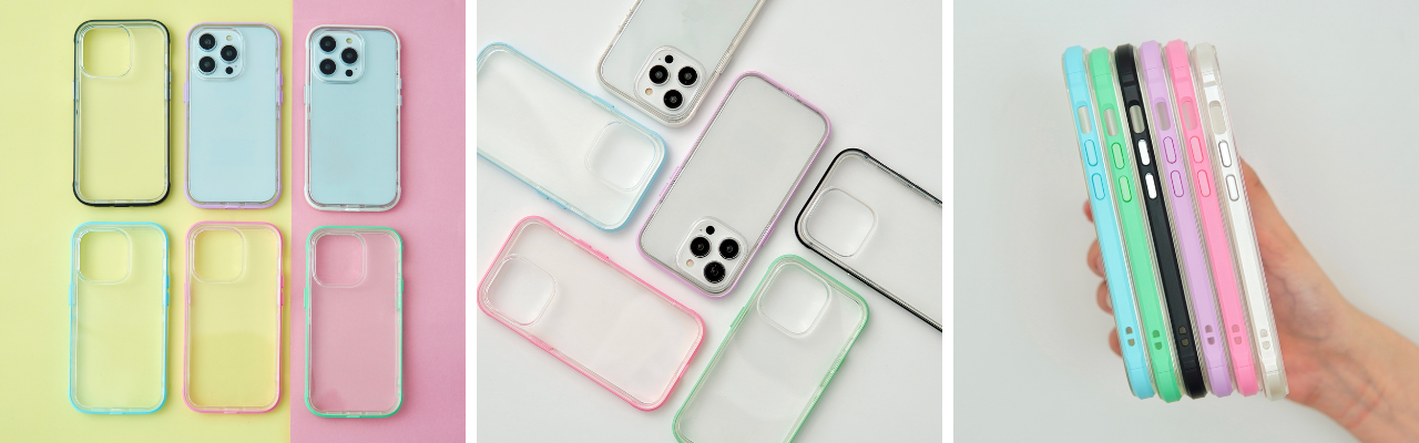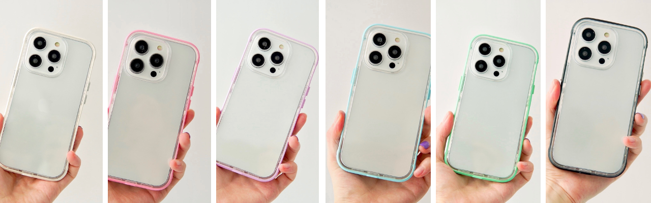 ②「アガる彩り」カラーフレームクリアスマホケース 各 2,680円(税込)