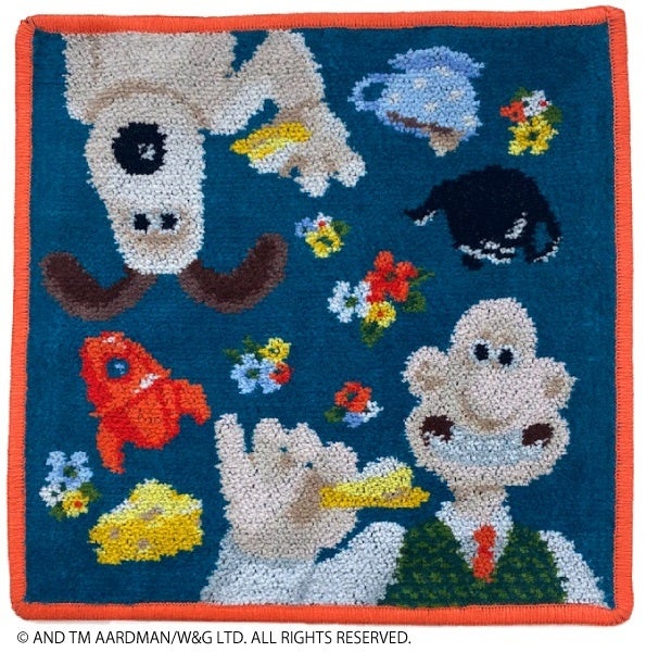 少しトボけた英国紳士の発明家ウォレスと、しっかり者の愛犬グルミット。世界中で愛される最高のコンビの、楽しいティータイムがFEILERのハンカチになって登場しました!おなじみのファニーな表情でこちらを見つめる彼らの後ろには、紅茶がたっぷり入ったティーポットに、ウォレスの大好物のチーズ、そしてロケット!思わずニコニコしてしまう様子が1枚のハンカチにぎゅっと詰まったデザインです。ウォレスの決まり文句「Don’t forget the crackers !(クラッカーを忘れないで!)」の通り、ウォレスの手にはクラッカーが描かれています。