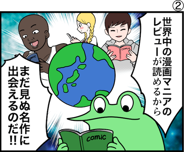 (漫画家カエルDX氏によるComicAddict概要/特徴イメージ)