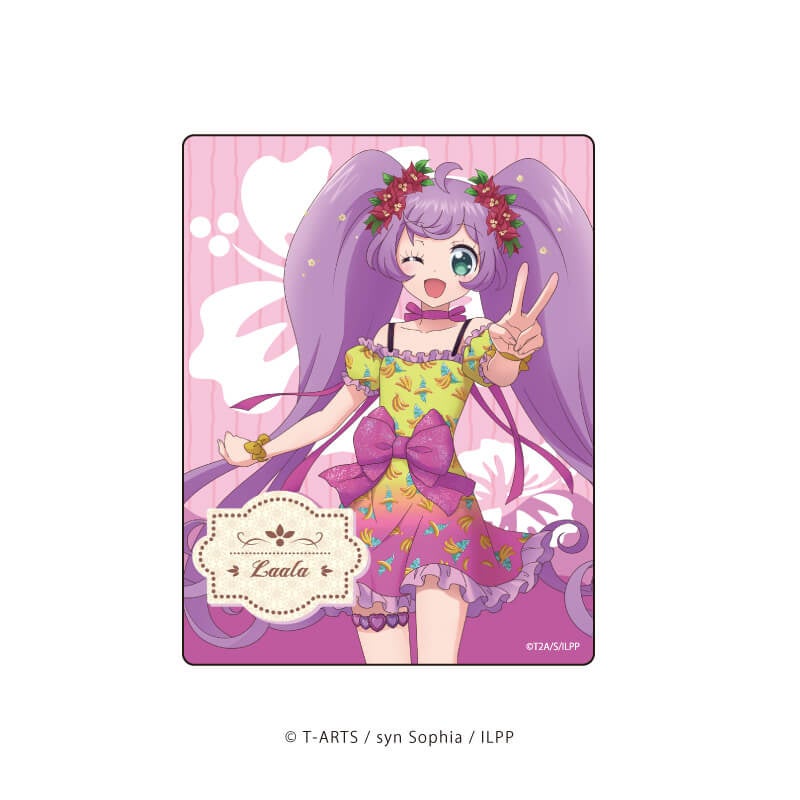 アクリルカードのデザインは、らぁらたちの描き下ろしイラストと背景にハイビスカスのシルエットを描いたもの。夏らしいデザインなので、旅行先などに持っていって夏のバカンスを一緒に楽しみましょう!