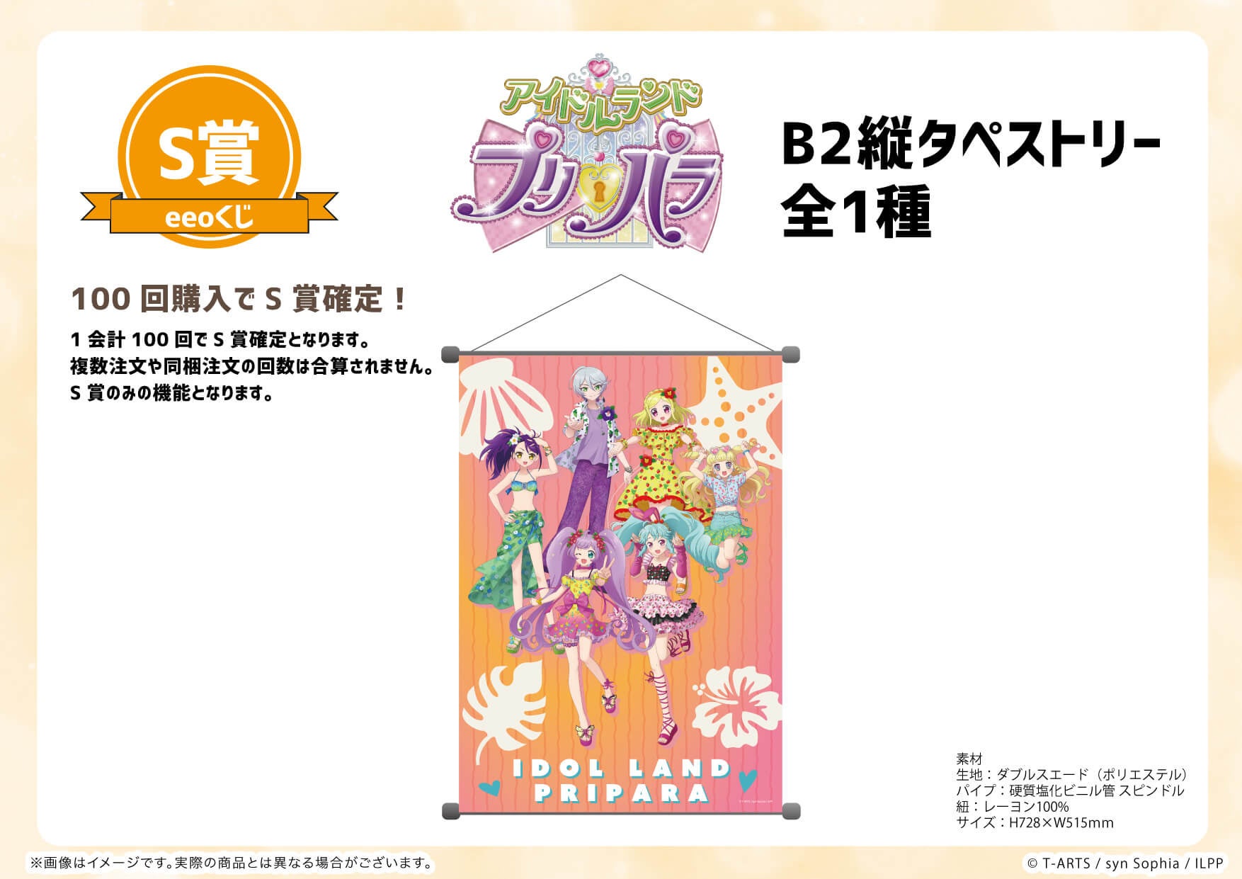まずご紹介するのは、『アイドルランドプリパラ』の「eeoくじ」の中で一番レアなS賞! S賞のB2縦タペストリーはおよそ縦73cm、横52cmというビッグサイズです‼