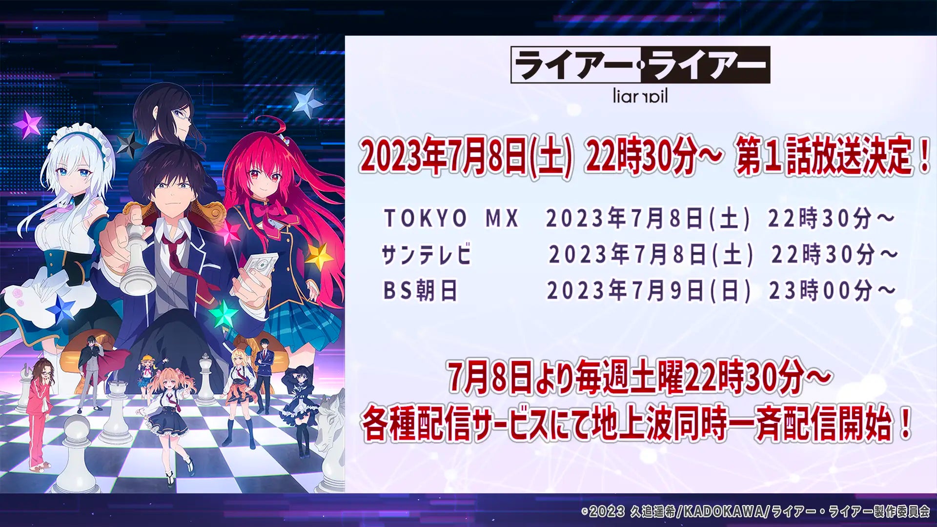TOKYO MX、サンテレビにて2023年7月8日(土)22時30分より、BS朝日にて2023年7月9日(日)23時00分より順次放送開始となります。