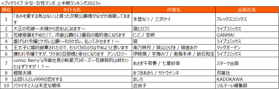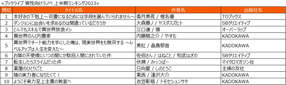 ■ブックライブ 上半期ランキング2023