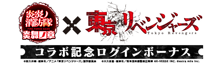 アニメ1期、2期ともに大人気の『東京リベンジャーズ』と『炎炎ノ消防隊 炎舞ノ章』がゲーム内でコラボレーションします。