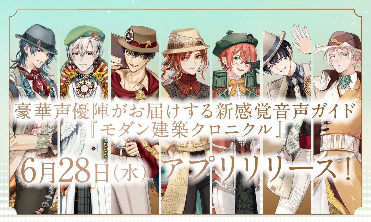 ブラウザ版から引き続き京都のモダン建築たちのCVを担当するのは岡本 信彦(美市 礼/京都市京セラ美術館)・斉藤 壮馬(辰長 三銀/京都文化博物館 別館)・松風 雅也(長楽館 景継/長楽館)・内田 雄馬(五十島 明/フォーチュンガーデン京都)の4人。