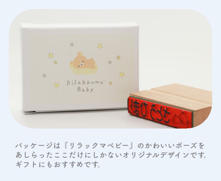 保育園に通うお子さまのおむつには名前を書くことが保育園から義務づけられますが、今回登場したおむつスタンプは、一枚一枚めんどうな手書きをしなくても、ポン!と押すだけで、ふんわりと優しく癒される「リラックマベビー」のかわいいイラストといっしょにお子様の名前が印字できる、とっても便利な時短グッズとなります。