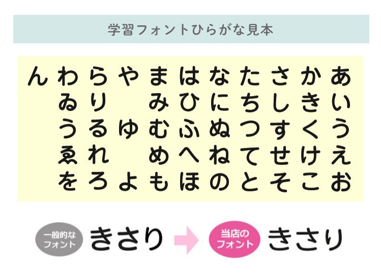 まだ文字を読めないお子さまにも、かわいい赤ちゃんリラックマのイラストで自分のものとわかるというメリットがありますが、「リラックマベビー おむつスタンプ」では、お名前部分もお子様の学びに配慮した学習フォントを採用。たとえばひらがなの「き」「さ」「り」のように間違った書き方をされやすい文字について、正しい書き方を覚えることに役立ちます。