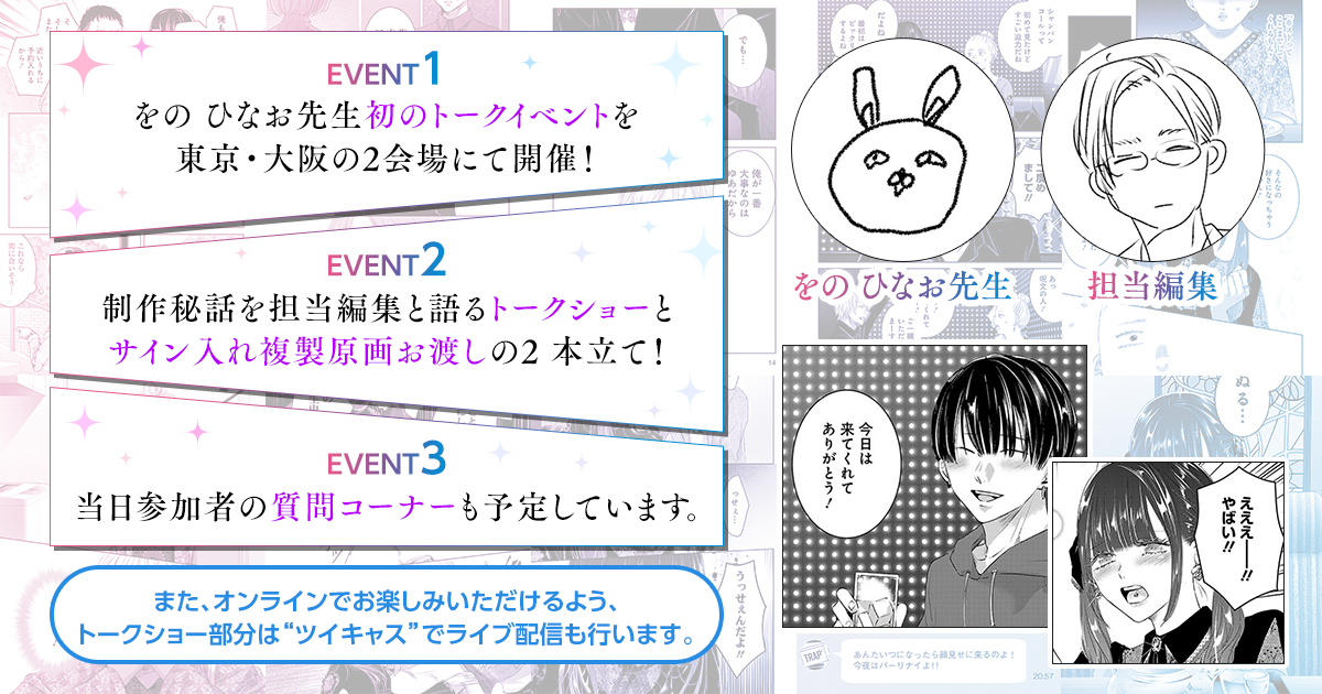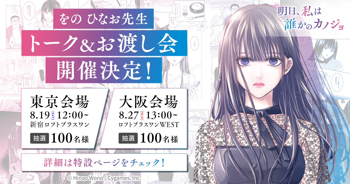 『明日、私は誰かのカノジョ』の作者をの ひなお先生による初のトークイベントを東京・大阪の2会場で開催します。