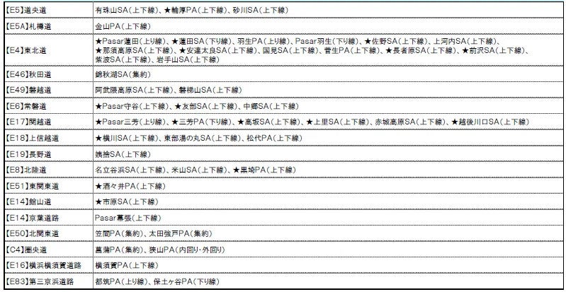 対象SA・PA:NEXCO東日本が管理するSA・PA 82カ所