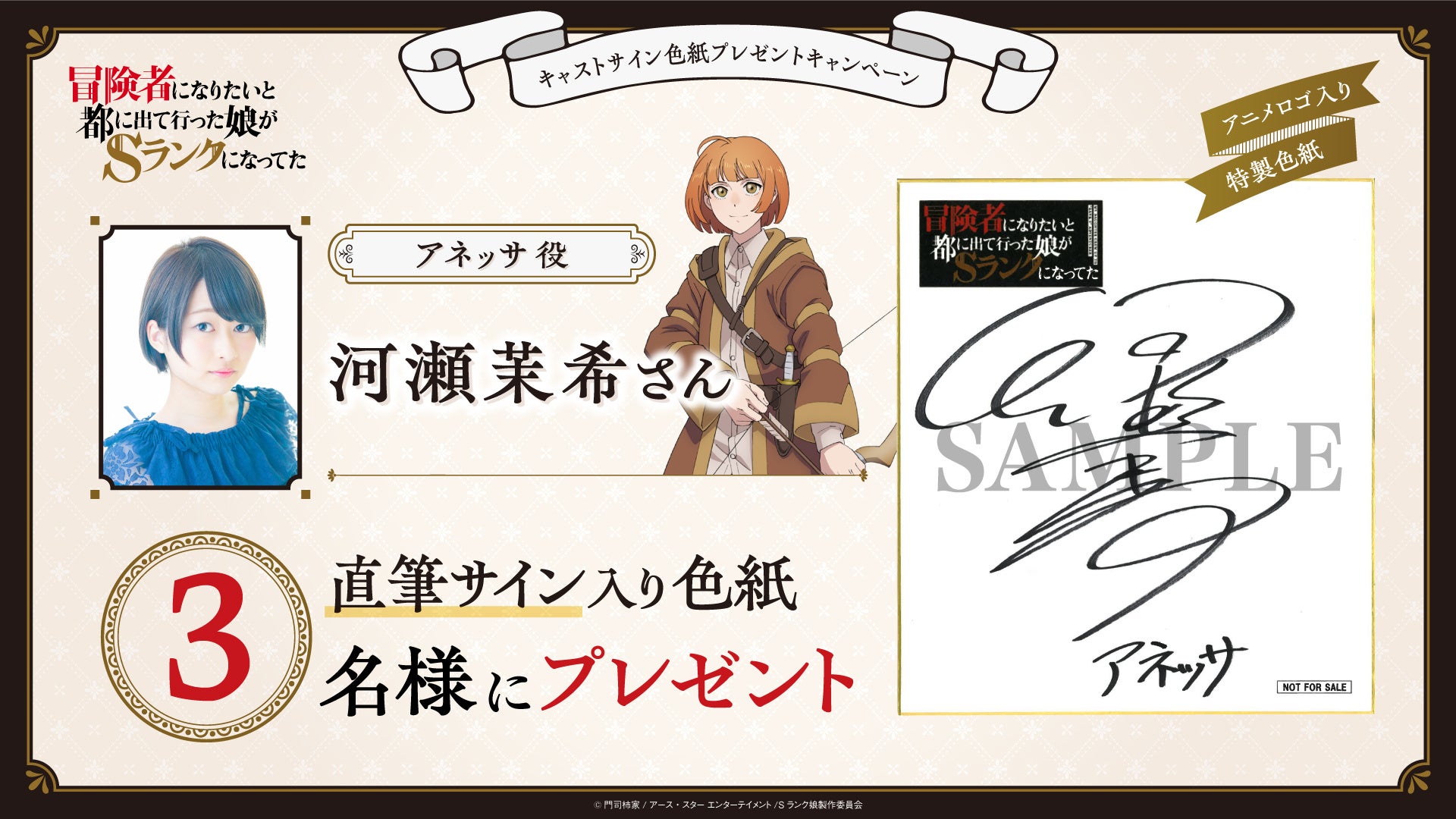 第三弾は、アネッサ役の河瀬茉希さんの色紙が抽選で当たります!