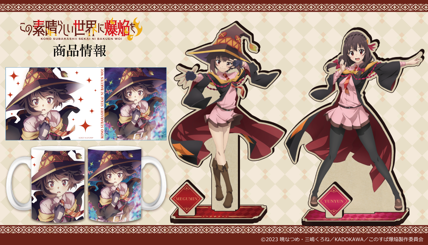 【きゃらON!この素晴らしい世界に爆焔を!商品ページ】https://www.charaon.jp/SHOP/130420/147420/list.html