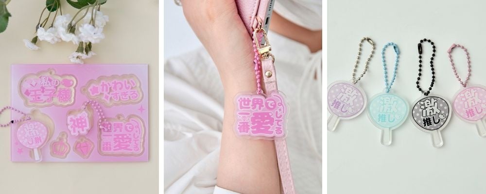 推し活にぴったりのポジティブなワードを揃えたアクリルチャームです。単体でも、グッズと重ね付けしても可愛く、推しの魅力を引き立てます。