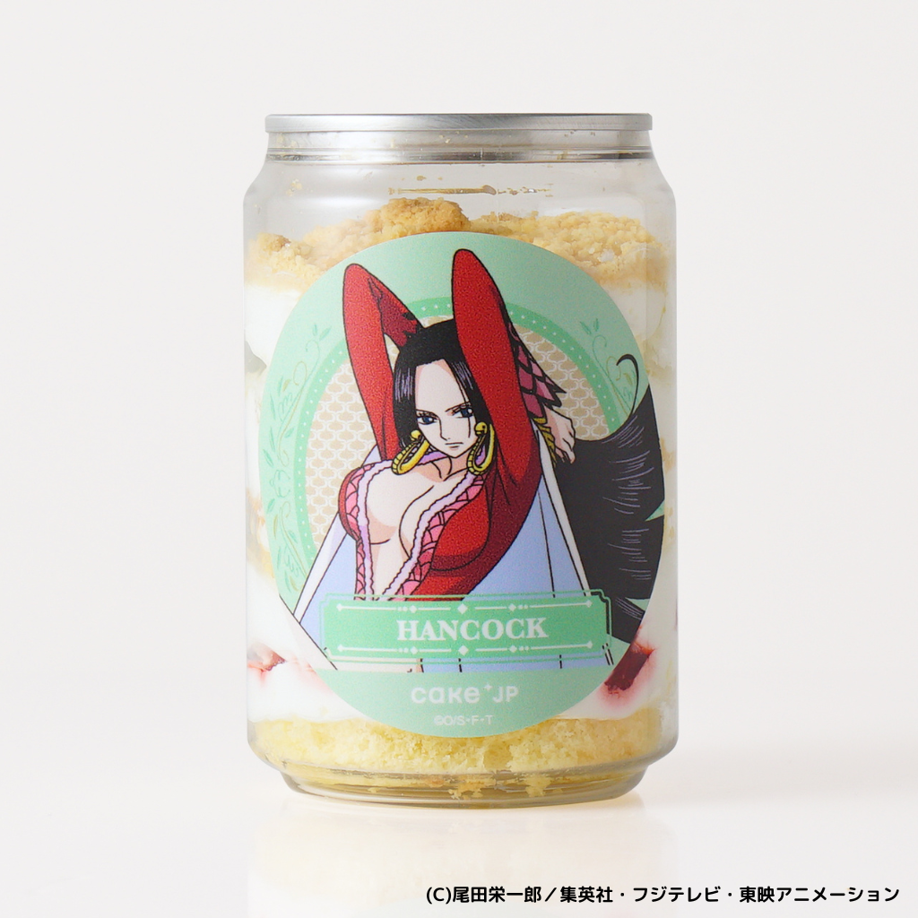 TVアニメ『ONE PIECE』とコラボし、メロメロの実の能力者であり、女帝のボア・ハンコックがパッケージになったケーキ缶「メロメロンケーキ缶」が登場します。メロメロ甘風(メロウ)を繰り出すハンコックのパッケージデザインはCake.jp限定のオリジナルデザインです。ケーキ缶の中身は、みずみずしいメロンをたっぷり使用したショートケーキとなっています。ハンコックの美しさに魅了されながら、旬の味を堪能する、贅沢なひと時をお過ごしください。
