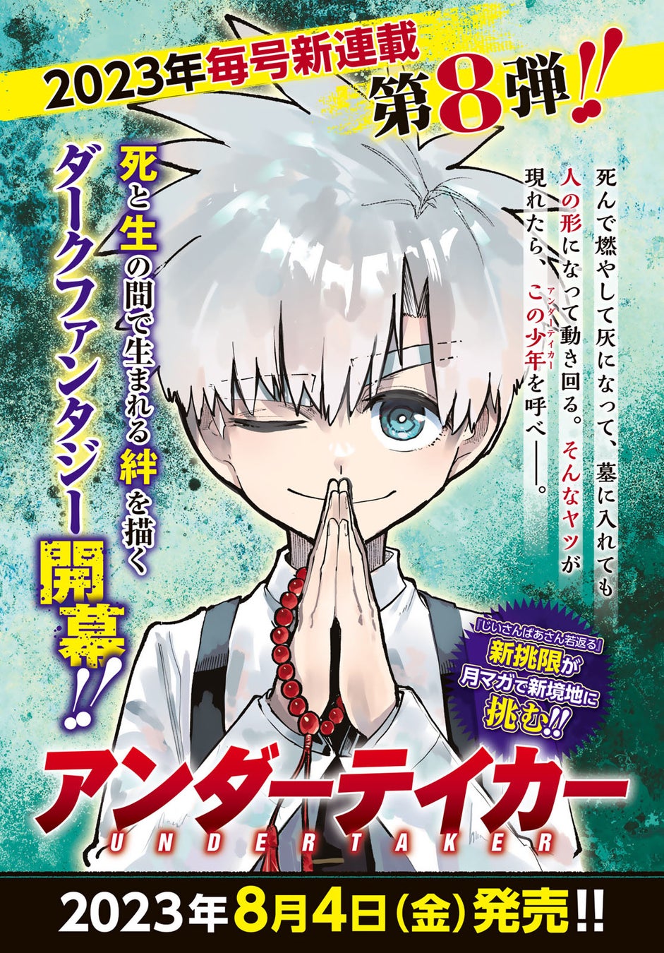 さらに8月4日(金)発売予定の9月号では、『じいさんばあさん若返る』の新桃 限(あらいど かぎり)先生が新境地に挑む連載開始!!死と生の間の絆を描くダークファンタジー『アンダーテイカー』がスタートしますので、こちらもご期待ください!