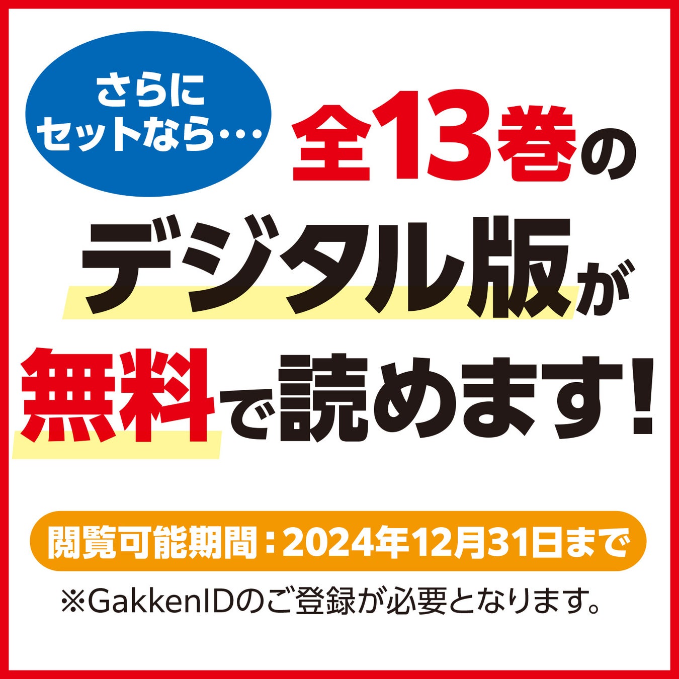 さらに、全13巻分のデジタル版(電子版)も無料で読めます(期間限定、GakkenIDの登録が必要となります)。初回限定版は数量限定となるのでお早めにお求めください。