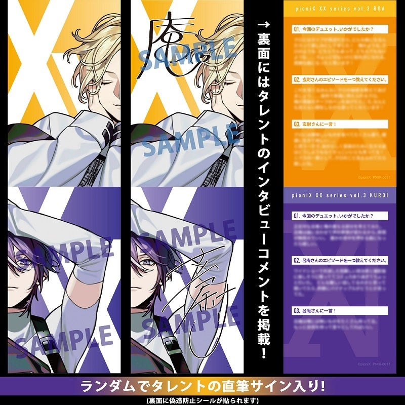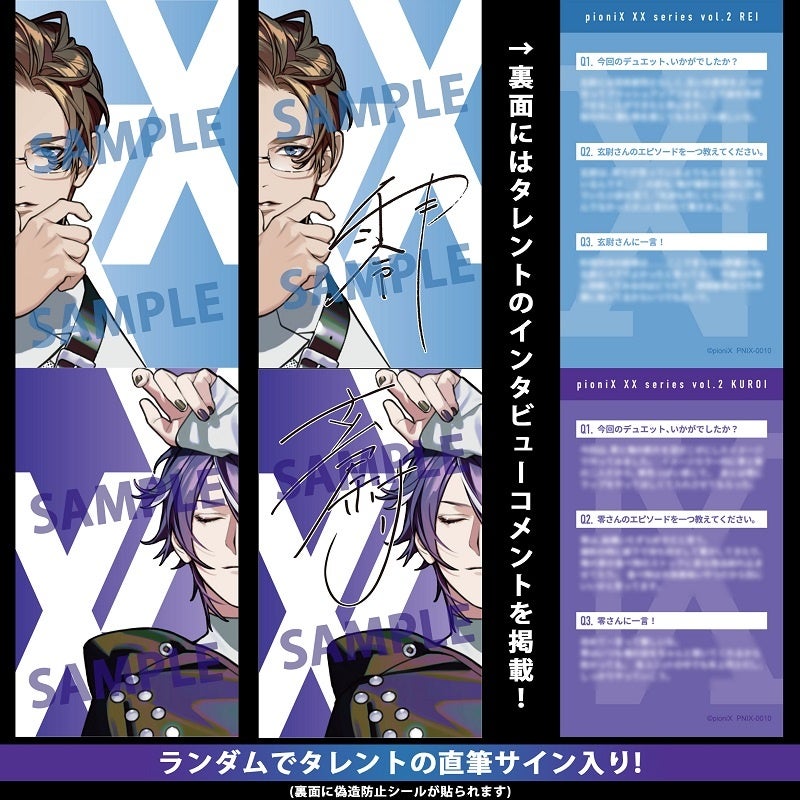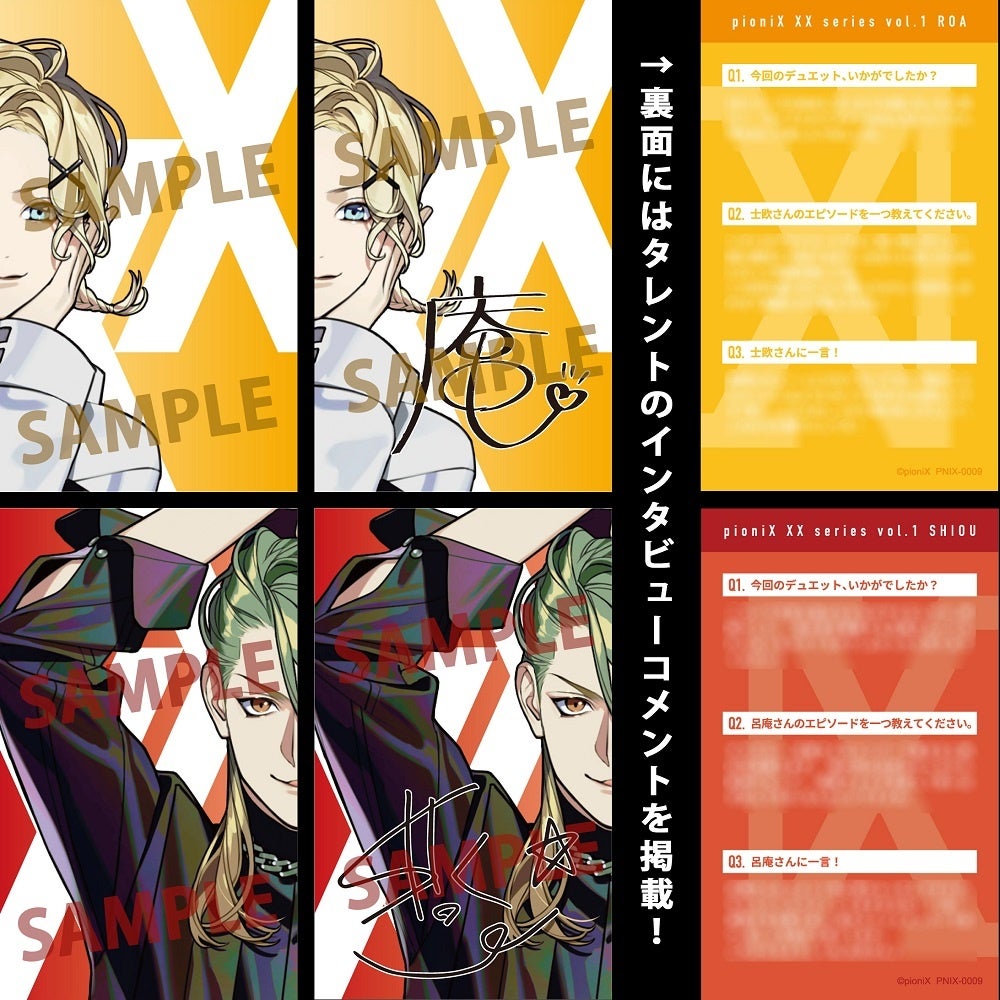 そんなpioniXから、事務所の垣根を超えたコンビのデュエット曲とドラマを収録した新シリーズ【『XX(ダブルクロス)』シリーズ】が第一弾、呂庵&士欧(CV:千葉瑞己&中島ヨシキ)で6月30日より本格始動しました! 第二弾は零&玄尉(CV:田所陽向&住谷哲栄)で7月28日、第三弾は呂庵&玄尉(CV:千葉瑞己&住谷哲栄)で8月25日、第四弾は零&士欧(CV:田所陽向&中島ヨシキ)で9月29日に発売予定です。