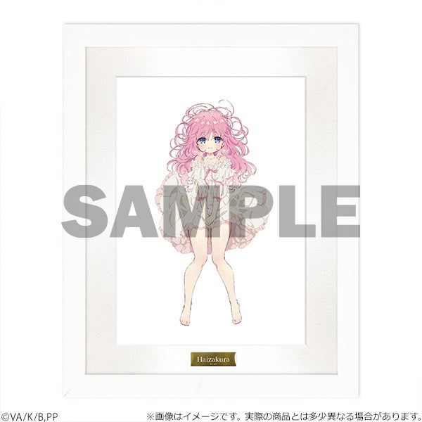 グリジェ姿の微笑えむ灰桜が描き下ろしされたイラストを、キャラファイングラフ印刷を行い、高級額縁に入れてお届けいたします。
