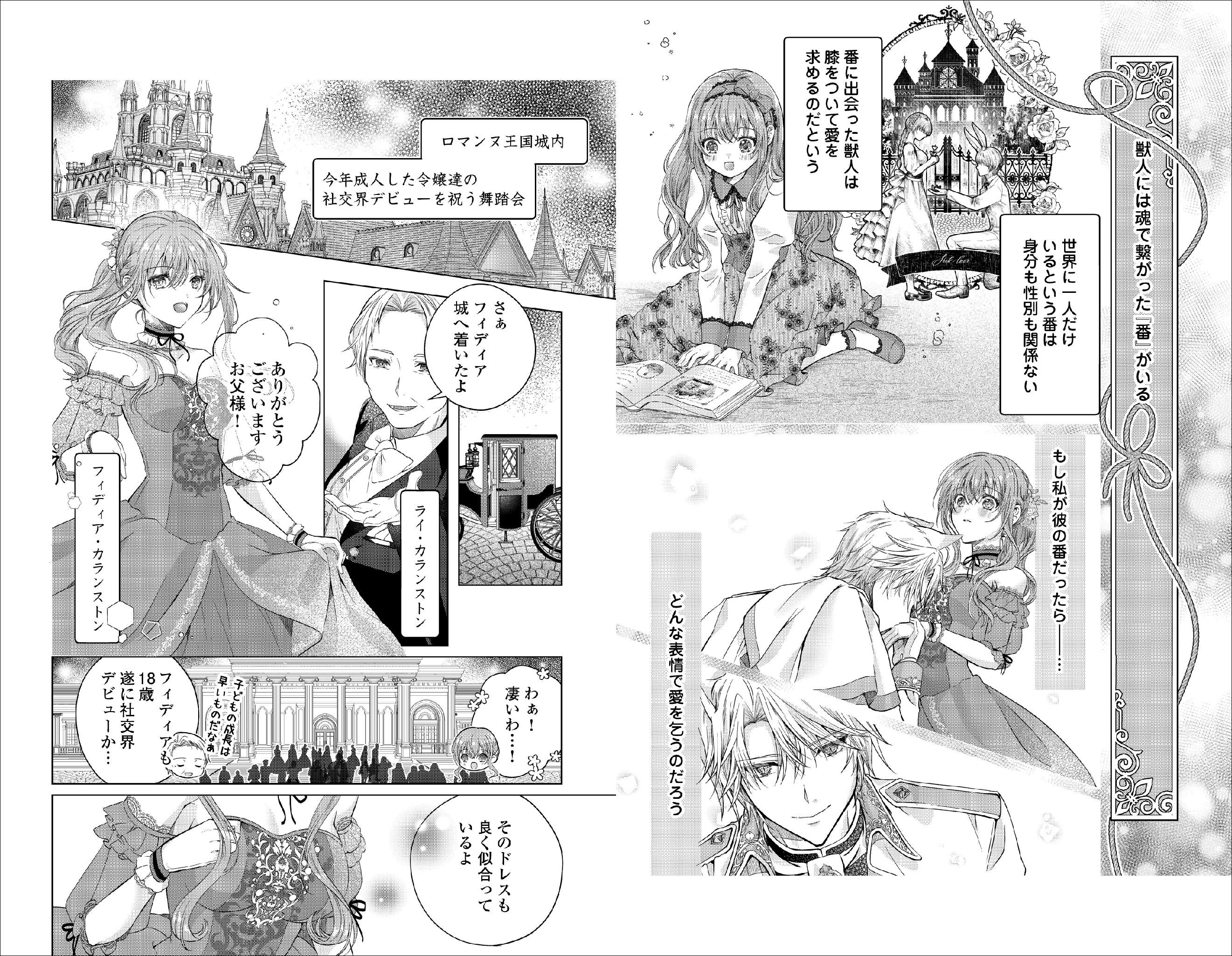 社交界デビューのために王都の舞踏会に訪れた彼女だったが、不運が重なり、彼に会えないまま王都を去ることになってしまう。一方、舞踏会にいたジェミールは、遠目に見たフィディアに心を奪われていた。彼女は彼の『番(つがい)』だったのだ――。ジェミールは独占欲から彼女を隔離するように部下に命令するが、それはすれ違いの始まりで……