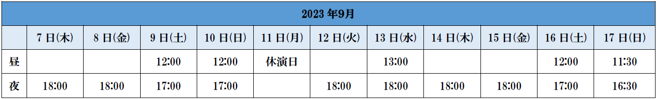 東京公演・2023年9月7日(木)~17日(日)、IMAホールにて上演。