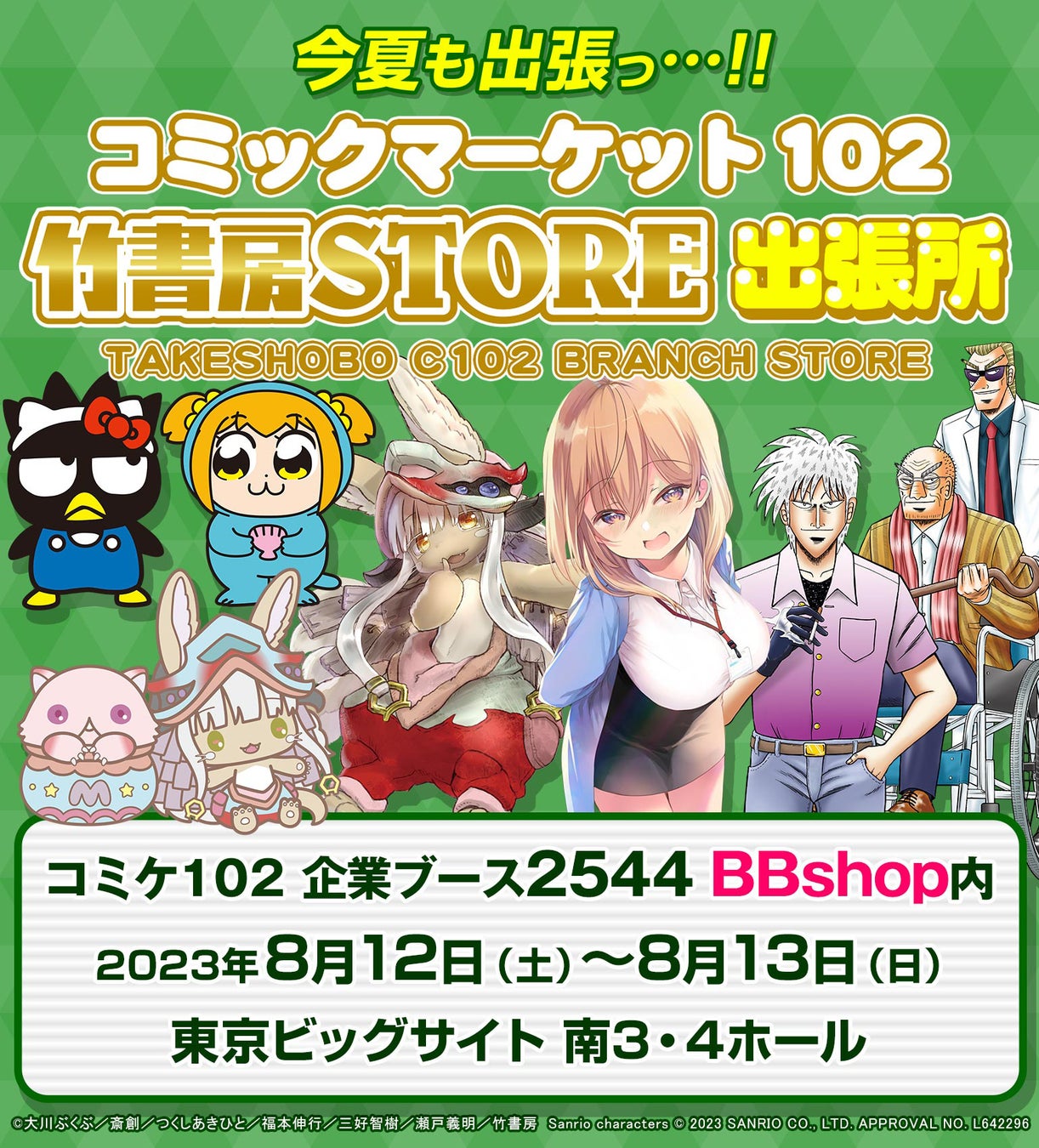 株式会社竹書房(本社:東京都千代田区、代表取締役社長:後藤 明信)は、2023年8月12~13日開催のコミックマーケット102・BBshop内にて「C102竹書房STORE出張所」を出展いたします。