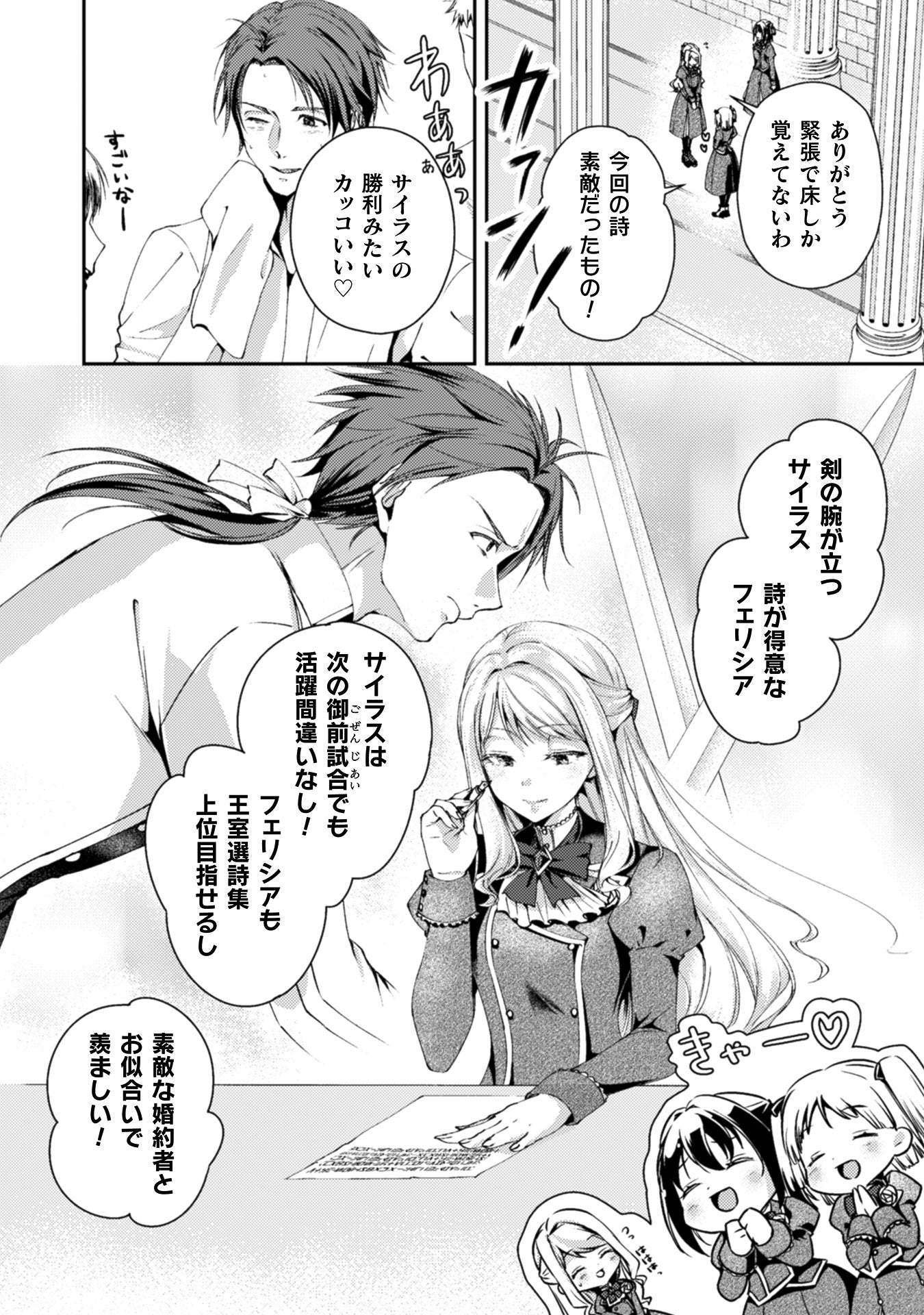 侯爵令嬢フェリシアは、同じく侯爵家の令息サイラスとの婚姻を控え順風満帆な日々を過ごしていた。