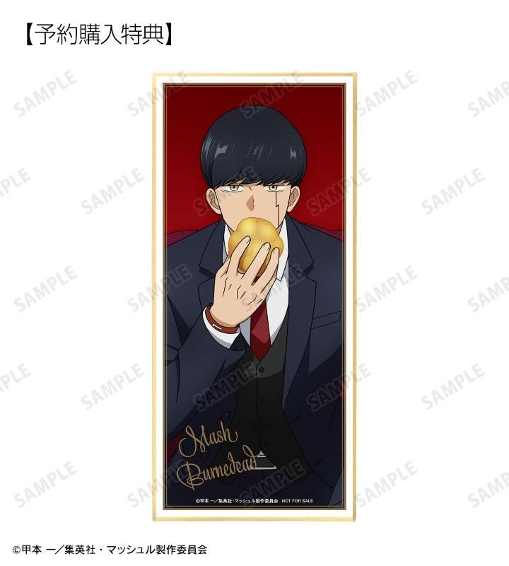 当商品を1BOX、または単品にて1BOX相当数ご注文ごとに、予約購入特典として「描き下ろしイラスト マッシュ・バーンデッド スーツver. スタンド付き色紙 イベント&AMNIBUS限定特典」を付属いたします。