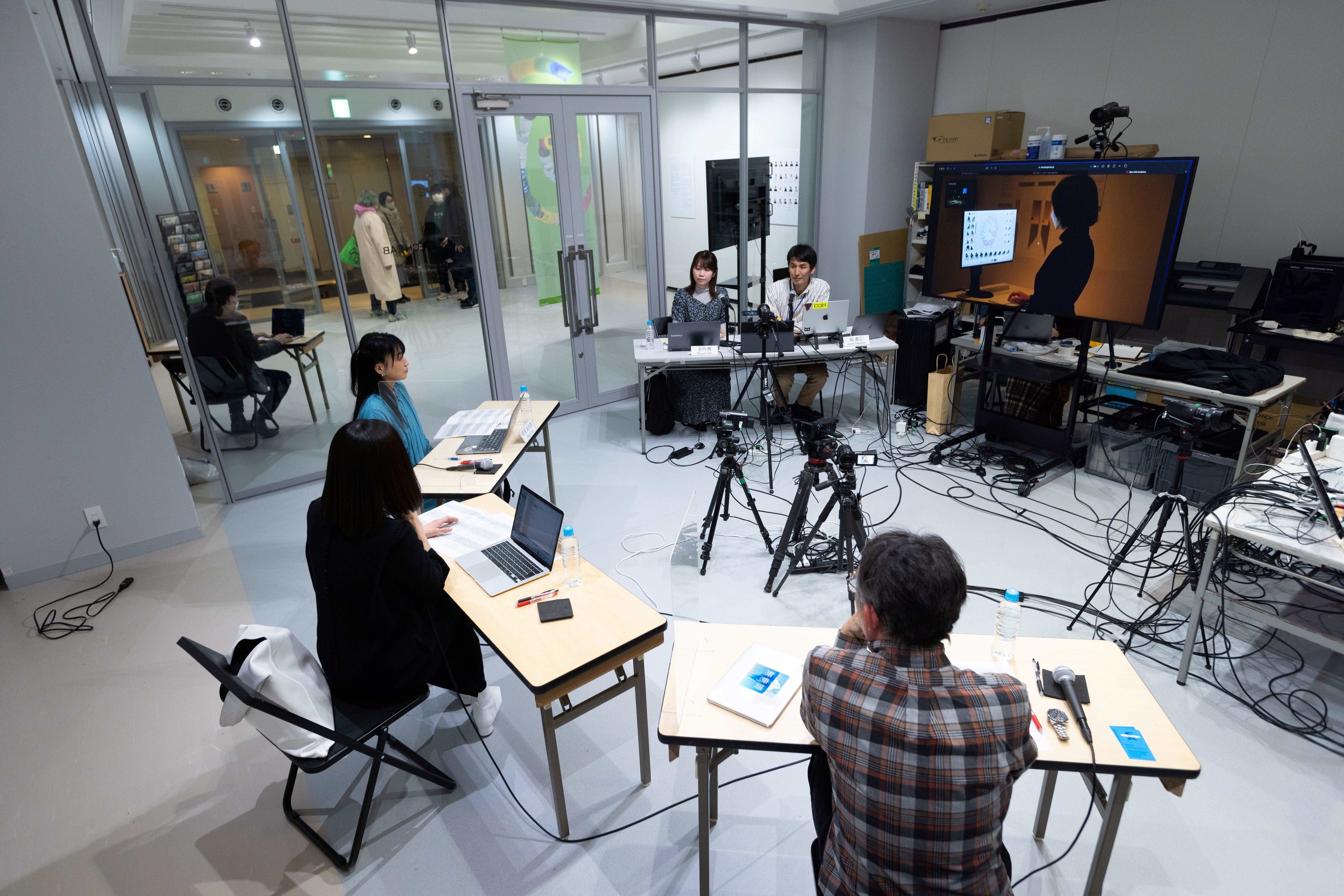 前回(第28回)の審査や発表の様子:左からエンターテインメント部門ノミネート選考会、アート部門ノミネート選考会、 アート部門最終公開講評会、エンターテインメント部門最終公開講評会