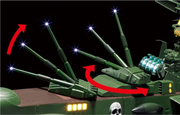 戦闘デモモードでは、主砲やスペースバスター、艦首ミサイルなどがサウンドやBGM・照明と連動して動き、迫力の戦闘シーンを再現します。