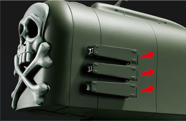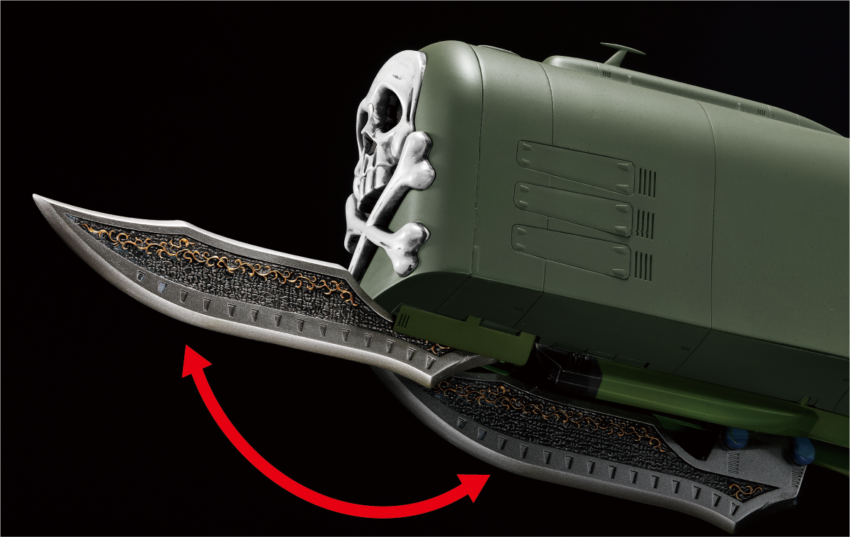 オリジナルデザインの衝角(ラム)が艦底部ハッチを押し広げ、自動で展開します。