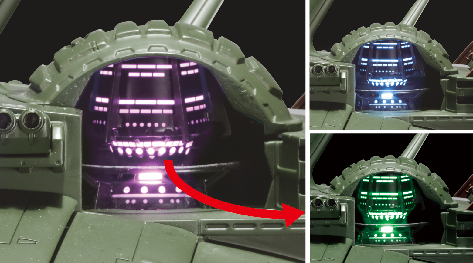 1/400スケール、全長1メートルの大迫力モデルは、他では表現できないディテールや内部構造も再現しています。光やサウンド、音声、可動などの多彩なギミックで、臨場感あふれるシチュエーションが楽しめます。