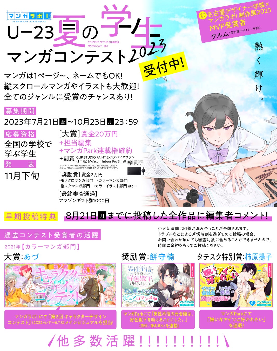 株式会社白泉社が運営する全誌合同マンガ投稿サイト「マンガラボ!」にて、7月21日(金)より学生限定のコンテスト「U-23夏の学生マンガコンテスト2023」が開催されます。
