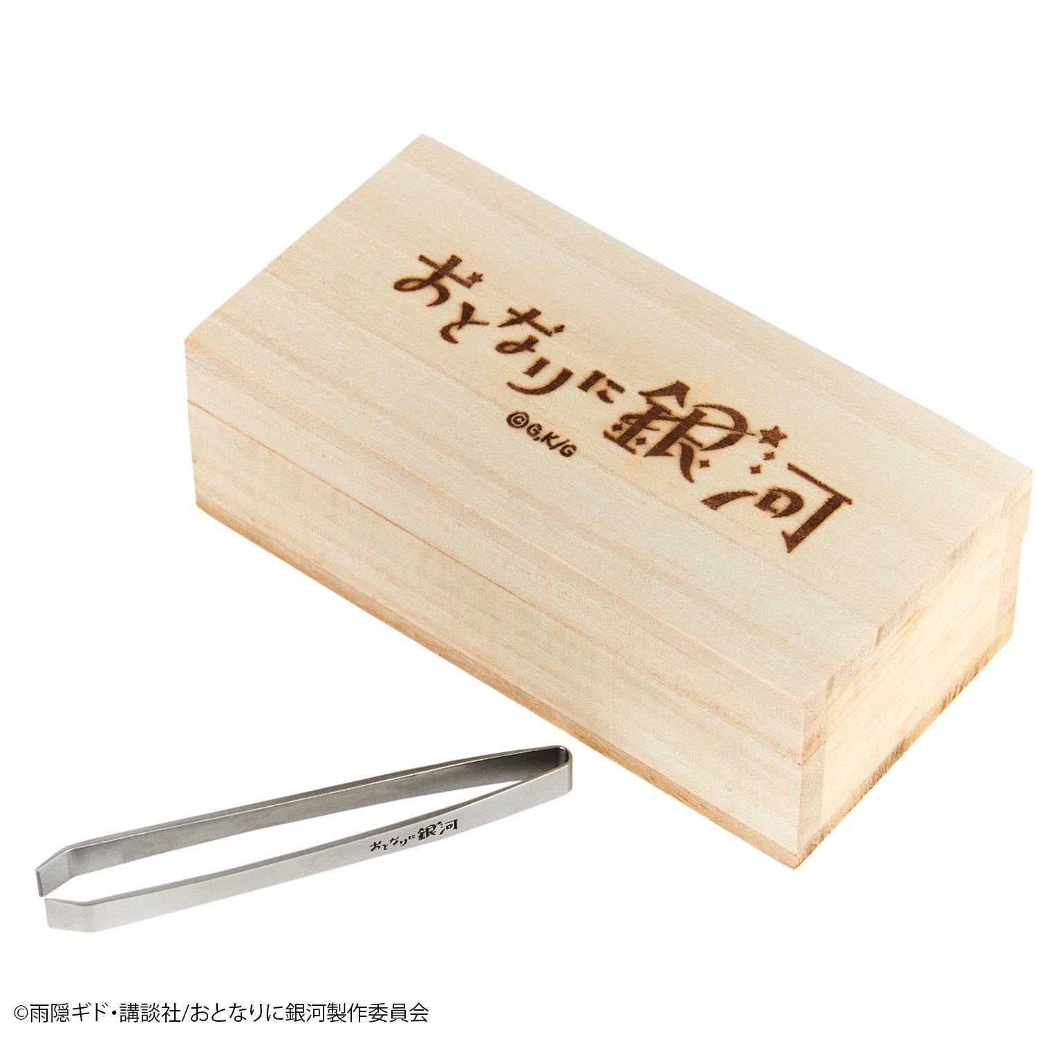 中でも、UVカット機能付き晴雨兼用折り畳み傘は、作品のティーザービジュアルに描かれた傘をモチーフにしたデザインで、90%のUVカット機能を有しています。また、化粧箱入り毛抜きは、作中に登場する刺抜きをモチーフにした商品で、木製の化粧箱に入れてお届けします。