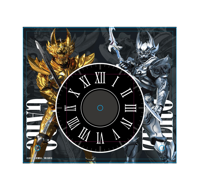 黄金騎士ガロと銀河騎士ゼロがデザインされたアクリル置き時計です。