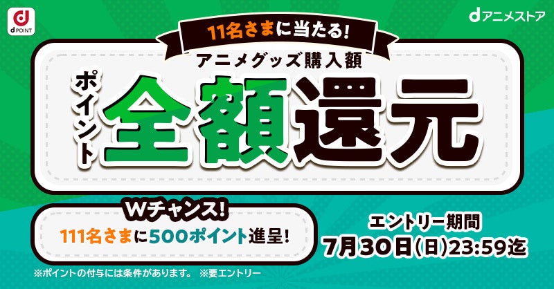 ▼【dアニメストア11周年記念!】11名さまに当たる!全額ポイント還元