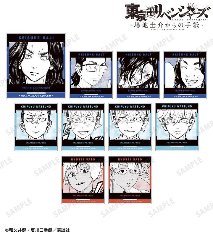 種類 :全7種(場地 圭介、松野 千冬、場地 圭介&松野 千冬 ver.A、ver.B、場地 圭介&佐藤 龍星、1巻本体表紙イラスト、2巻本体表紙イラスト)