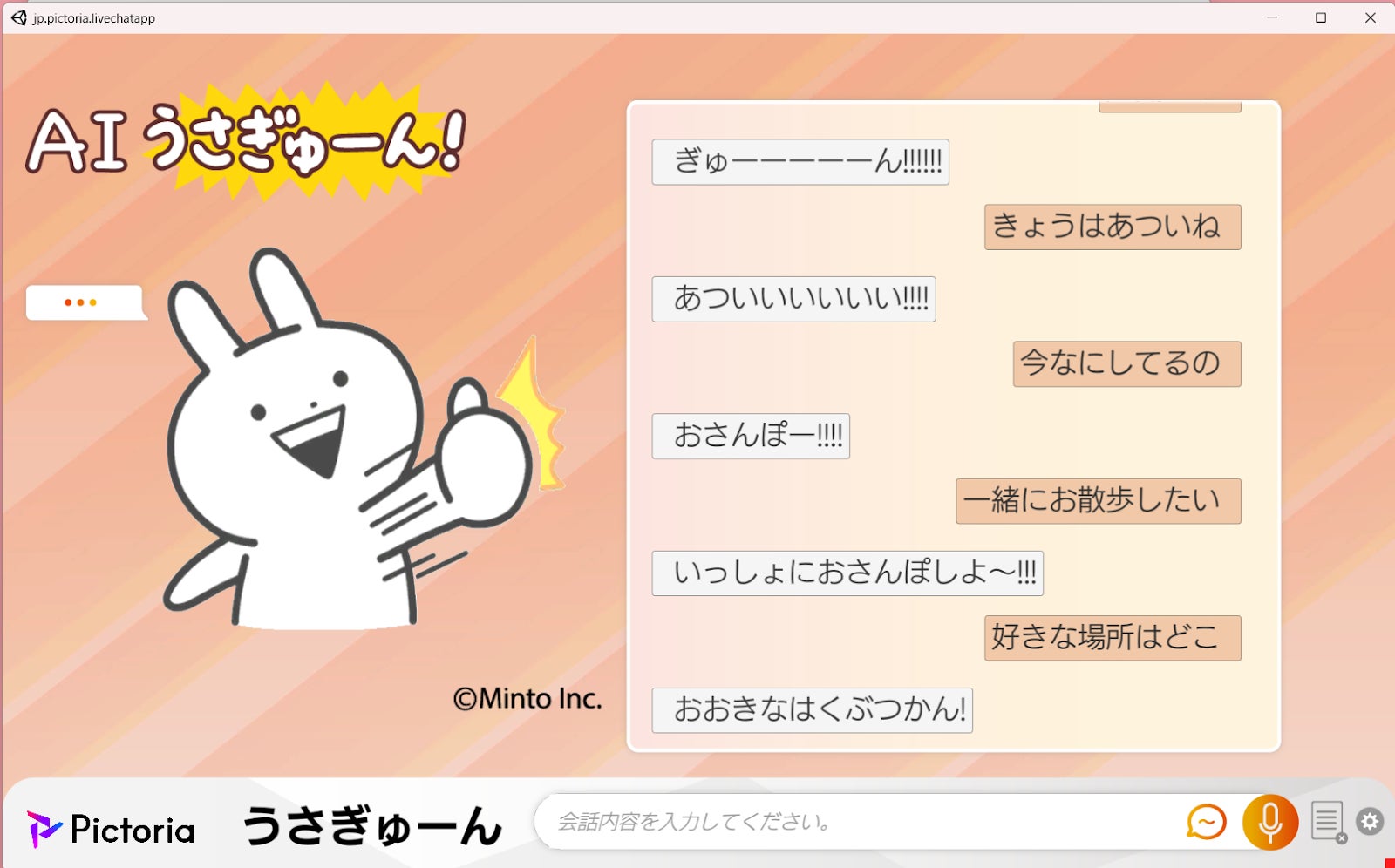 今回はユーザーの音声での呼びかけに、「うさぎゅーん!」がテキストで答えるというタイプのコミュニケーションでしたが、将来的にはイベントにてオンライン上でキャラクターと自然な会話ができることを目指し、キャラクターコンテンツの新しい体験を開拓していきたいと考えます。