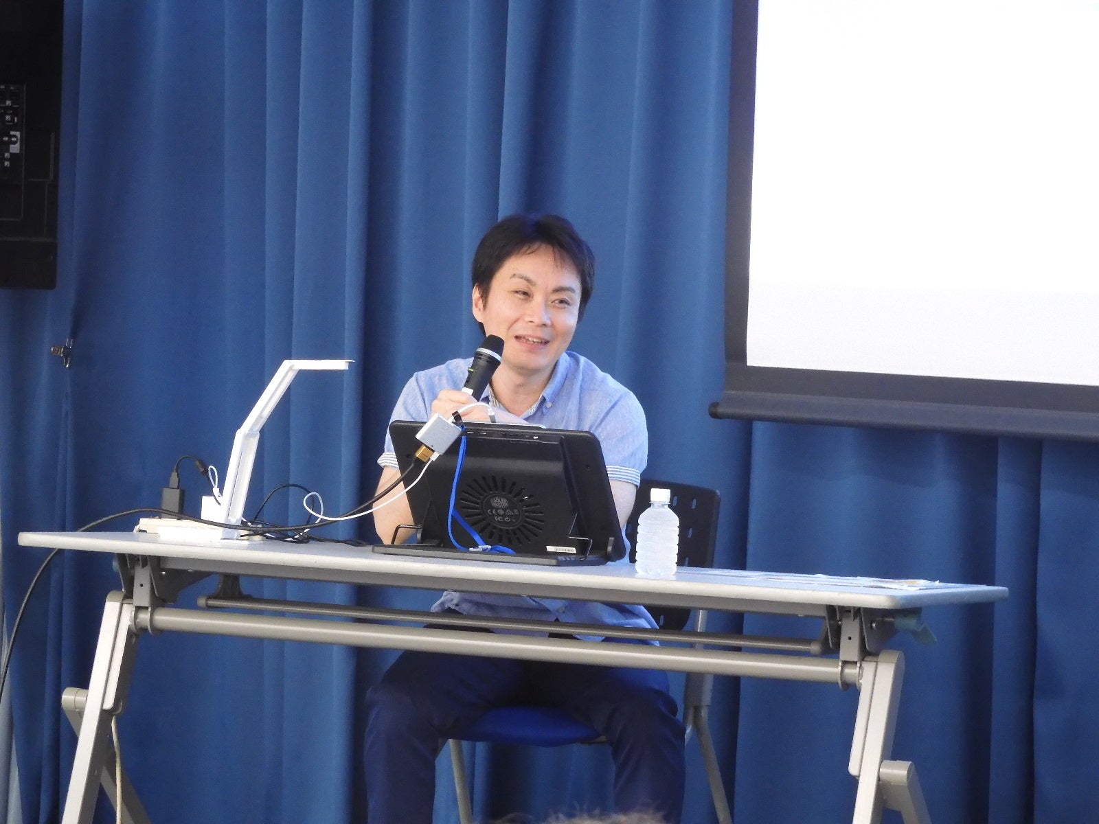 まずは、2023年3月に劇場公開されたばかりの『映画ドラえもん のび太と空の理想郷』の予告編の映像を参加者の皆さんと視聴。その後、堂山さんから「非常にたくさんの方に観ていただいた作品です。子どもはもちろん、ドラえもんってすごく幅の広い層の方に観られる作品ですが、今回の映画では脚本のテーマをどうやってドラえもんの映像に落とし込むか考えるのが大変でした」と、制作エピソードについてお話しいただきました。