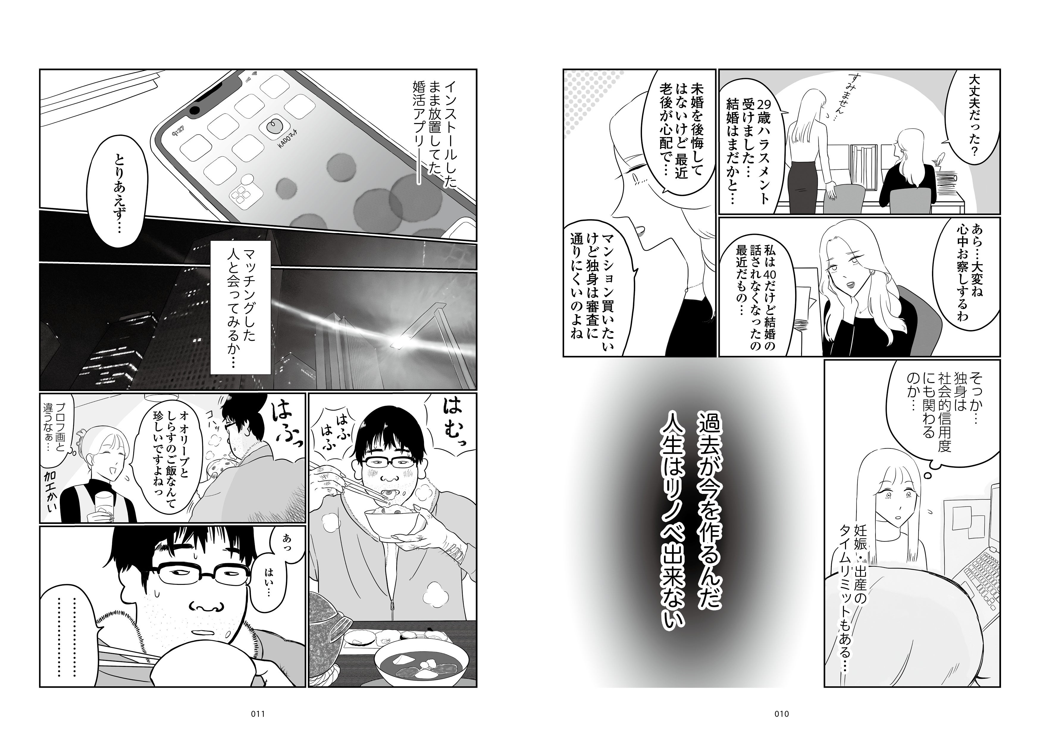 ある日、既婚者と独身の違いを目の当たりにし、独身は社会的信用に関わるのではとマッチングアプリで婚活を始めるが―。